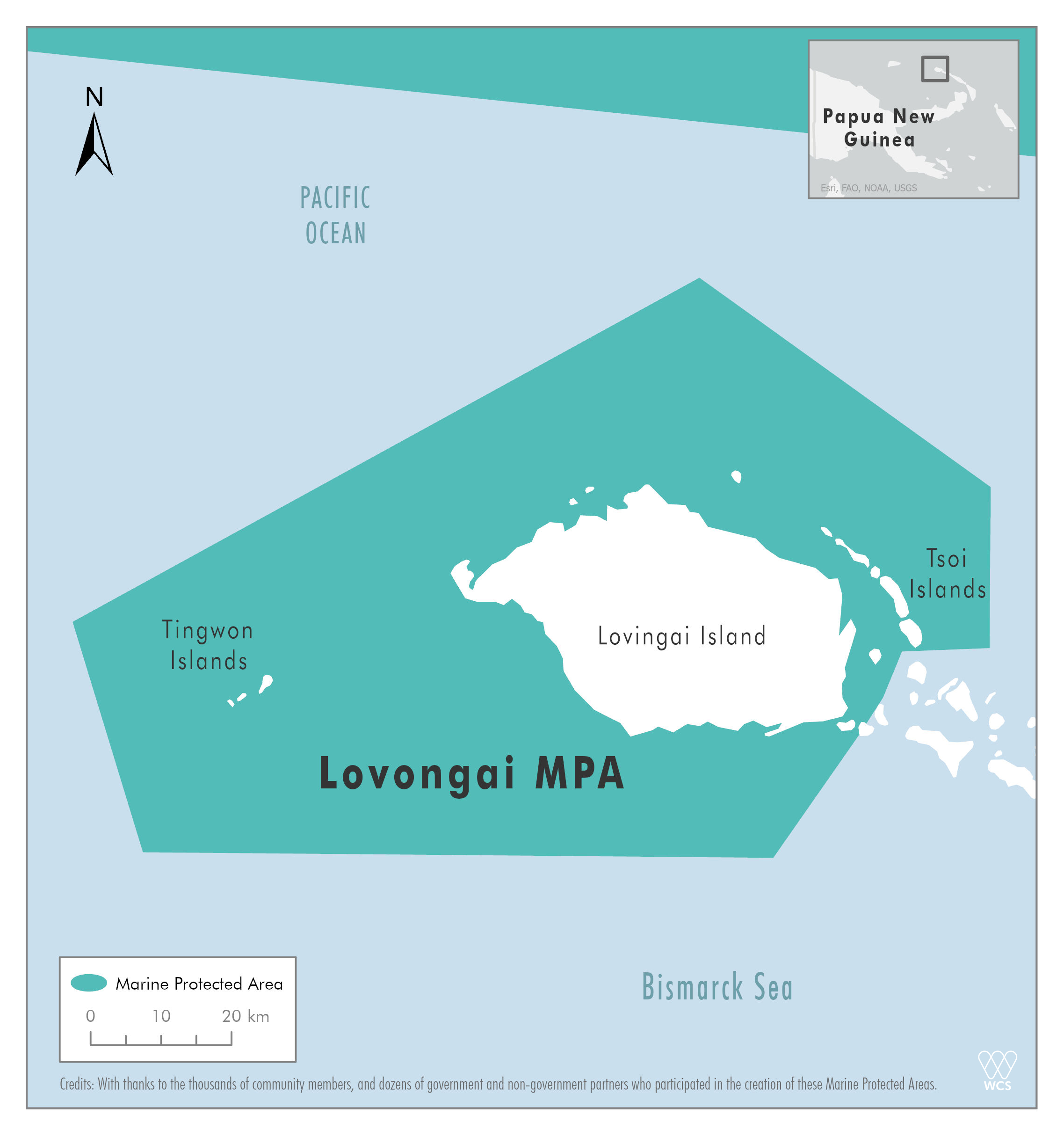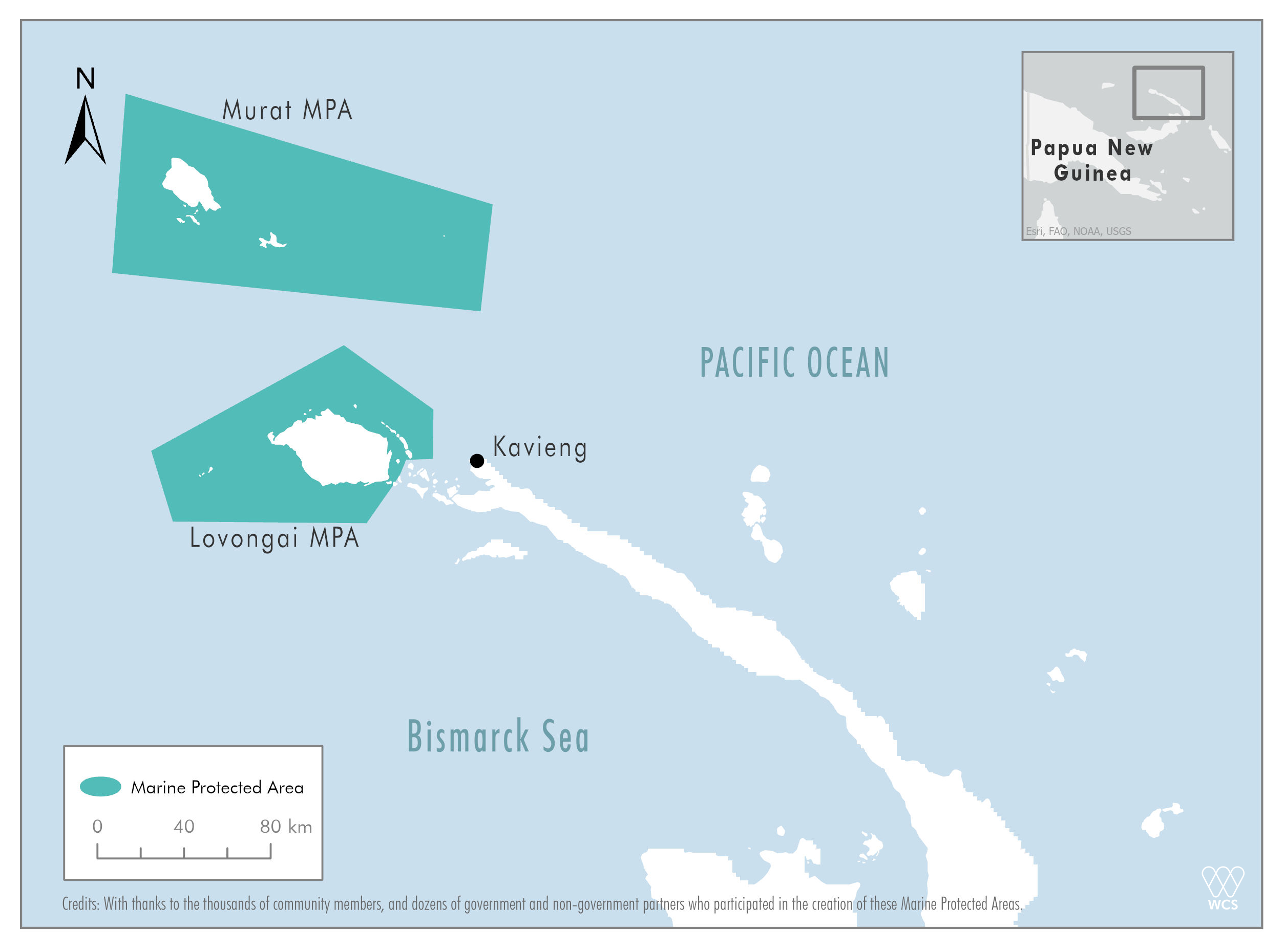 WCS supported this project over nearly seven years, and that work was made possible through the partnership of CEPA and the Government of Papua New Guinea, the New Ireland Provincial Government and LLGs, ward members, village courts, local organizations including Ailan Awareness Inc. and Lolieng Sustainable Programme, legal advisor Grace Dom, and all the communities of Lovongai and Murat LLGs. Funding in support of this work was provided over many years from Oceans 5, Re:wild, Blue Action Fund, Bloomberg Philanthropies, the Tiffany & Co. Foundation, the Shark Conservation Fund, the Disney Conservation Fund, the John D. and Catherine T. MacArthur Foundation, the WCS 30x30 Ocean Accelerator in partnership with The Thomas L. Kempner, Jr. Foundation, the WCS MPA Fund in partnership with the Waitt Foundation, and Harvey and Heidi Bookman.